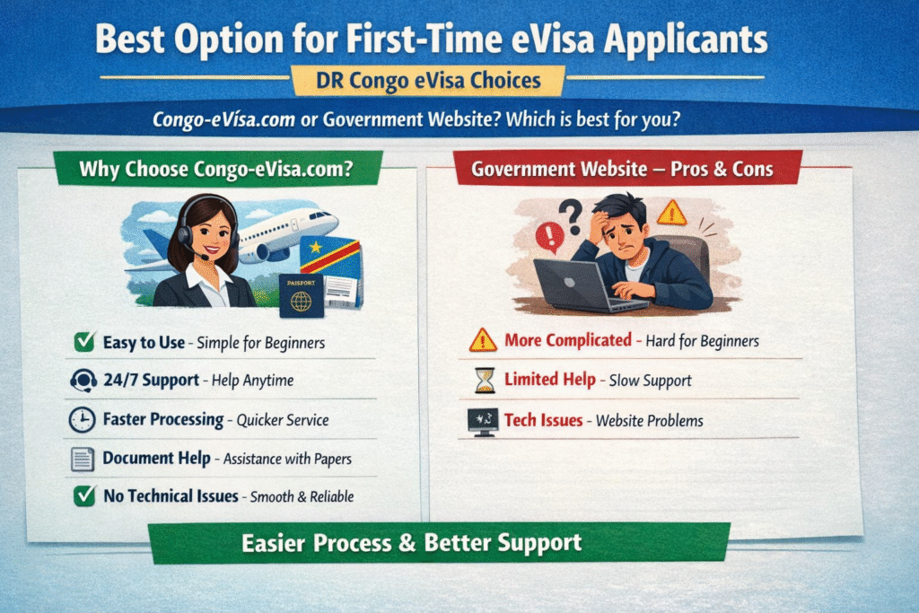If you're applying for a DR Congo eVisa for the first time, you have two choices: congo-evisa.com (an agent site) or the government website. Let’s keep it simple and see which one is best for you!