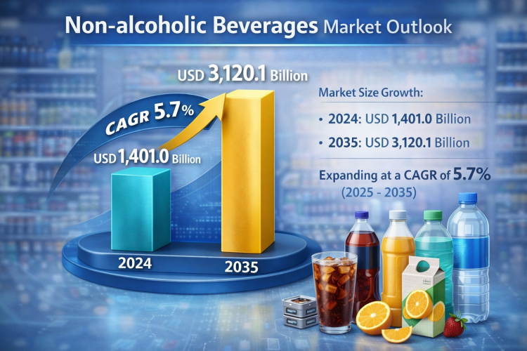 The global non-alcoholic beverages market is undergoing a significant transformation as consumer preferences shift toward healthier, more functional, and lifestyle-oriented drink options. Valued at USD 1,401.0 billion in 2024, the market is projected to reach USD 3,120.1 billion by 2035, expanding at a CAGR of 5.7% from 2025 to 2035. This steady growth is supported by rising health awareness, product innovation, government regulations, and advancements in packaging and distribution technologies.
