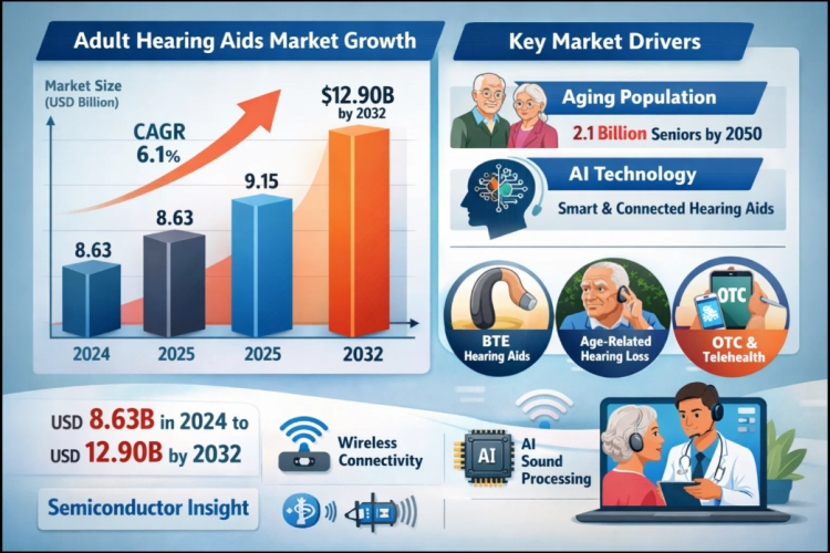Adult Hearing Aids Market to Reach $12.90B by 2032 Driven by Aging Population & AI Technology