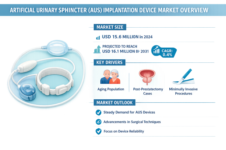 The Artificial Urinary Sphincter (AUS) Implantation Device Market continues to play a vital role in the management of severe stress urinary incontinence, particularly among men with post-prostatectomy complications. According to the latest market analysis, the global AUS implantation device market was valued at USD 15.6 million in 2024 and is projected to reach USD 16.1 million by 2031, growing modestly at a CAGR of 0.4% during the forecast period.
