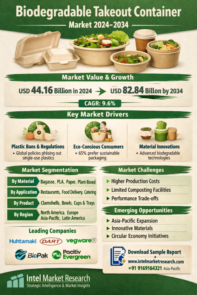 According to a new report from Intel Market Research, the global Biodegradable Takeout Container market was valued at USD 44,160 million in 2024 and is projected to reach USD 82,840 million by 2034, growing at a CAGR of 9.6% during the forecast period (2024–2034). This substantial growth is driven by increasing environmental regulations, rising consumer demand for sustainable packaging, and significant advancements in biodegradable material technologies.
