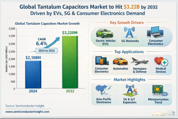 Global Tantalum Capacitors Market to Hit $3.22B by 2032 Driven by EVs, 5G & Consumer Electronics Demand