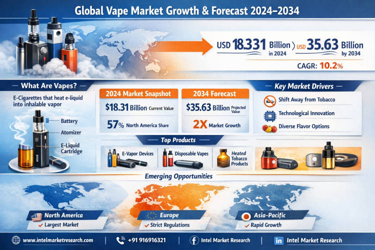 According to new research from Intel Market Research, the global vape market was valued at USD 18.31 billion in 2024 and is projected to reach USD 35.63 billion by 2034, expanding at a steady CAGR of 10.2% during the forecast period (2024-2034). This substantial growth is being fueled by shifting consumer preferences away from traditional tobacco, technological advancements in vaping devices, and increasing acceptance of vaping as a harm reduction strategy.