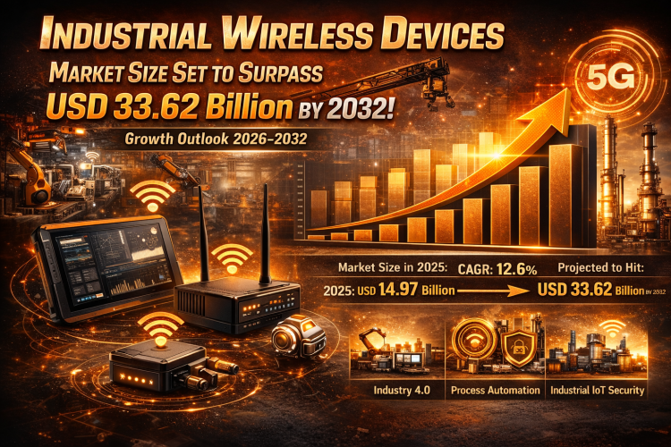 The Industrial Wireless Devices Market Size Set to Surpass USD 33.62 Billion by 2032 | Growth Outlook 2026–2032t is entering a decisive growth phase as manufacturers and infrastructure operators accelerate digital transformation. Valued at USD 14.97 billion in 2025, the market is projected to reach USD 33.62 billion by 2032, expanding at a CAGR of 12.6% during the 2026–2032 period. Driven by the rapid adoption of Industry 4.0, real-time process monitoring, and resilient industrial connectivity, wireless technologies are becoming a foundational layer across modern industrial ecosystems.