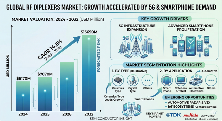 Global RF Diplexers Market, valued at a substantial USD 6170 million in 2024, is poised for remarkable expansion, forecasted to surge from USD 7070 million in 2025 to USD 15690 million by 2032. This robust growth trajectory, characterized by a compound annual growth rate (CAGR) of 14.6%, is detailed in a comprehensive new report released by Semiconductor Insight. The study underscores the indispensable function of RF diplexers, which are passive RF components that enable a single antenna to be used for simultaneous transmission and reception on two different frequency bands, in the proliferation of modern wireless communication systems.