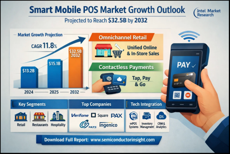 The global Smart Mobile POS Market, valued at a robust USD 13.2 billion in 2024, is on a trajectory of significant expansion, projected to grow from USD 15.1 billion in 2025 to USD 32.5 billion by 2032. This growth, representing a compound annual growth rate (CAGR) of 11.8%, is detailed in a comprehensive new report published by Intel Market Research. The study highlights the critical role of these versatile transaction systems in enhancing customer experience and optimizing business operations, particularly within the retail and hospitality sectors.